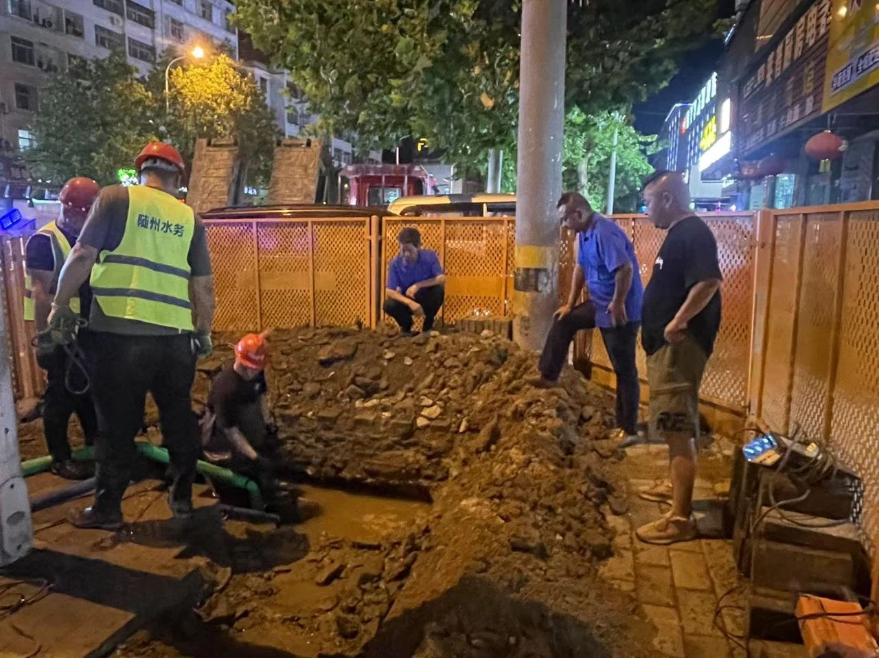 “管道早一分鐘搶修好,市民就早一分鐘恢復(fù)用水。沒有條件創(chuàng)造條件也要上!”針對現(xiàn)場情況,周新和他的“黨員突擊隊(duì)”隊(duì)員們憑借多年來積累的豐富經(jīng)驗(yàn),制定了靈活有效的搶修方案。周新身體力行,突擊隊(duì)員們分工協(xié)作,搶修工作有條不紊地展開:關(guān)閉閥門、設(shè)置圍擋、清除覆土、查找漏點(diǎn)、抽排積水、修補(bǔ)管道、試壓通水……