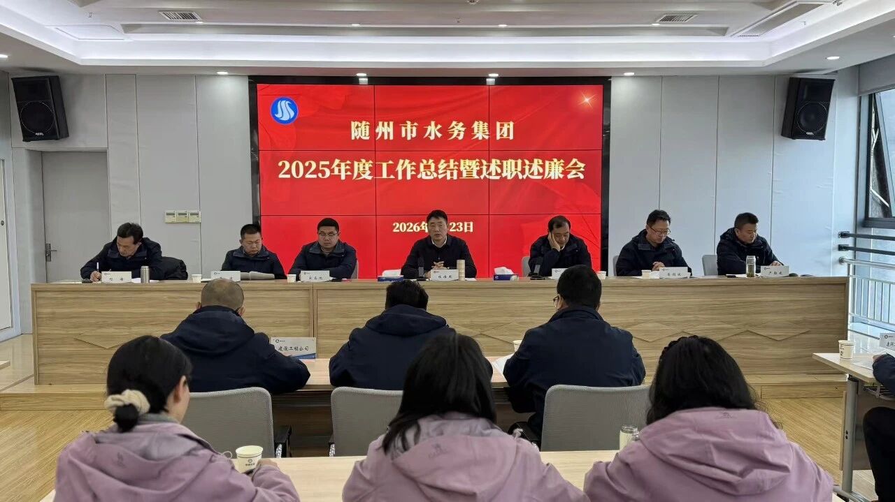 2026年1月23日,隨州市水務集團2025年度工作總結(jié)暨述職述廉會議隆重召開。會議全面總結(jié)過往成效、精準謀劃未來發(fā)展,凝聚推動集團高質(zhì)量發(fā)展的強大合力。集團黨總支書記、董事長桂維國出席并作重要講話,黨總支副書記、總經(jīng)理嚴賢江主持會議,集團領導班子成員、各公司班子成員及全體干部職工參會。